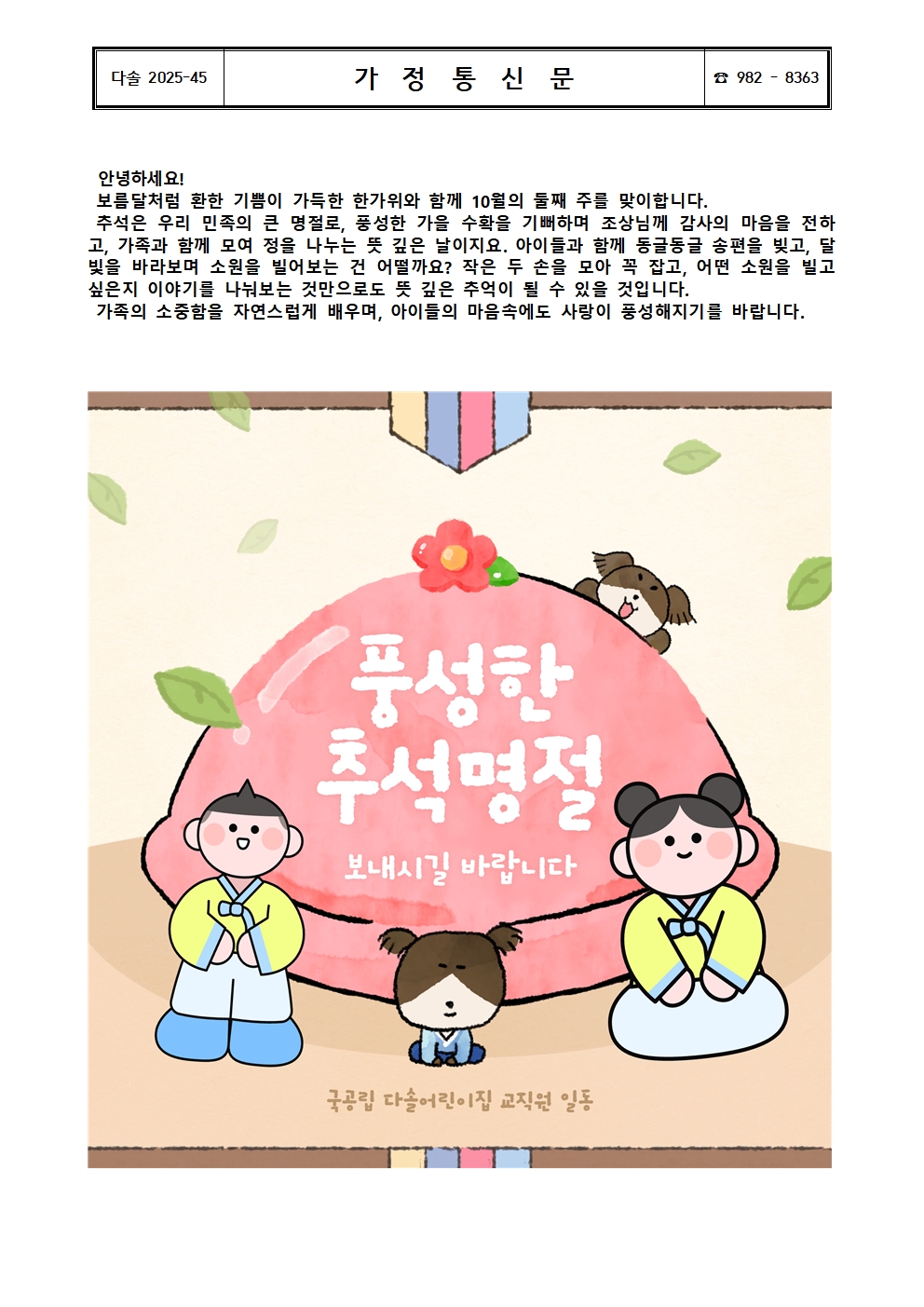 다솔어린이집 친구들과 가족분들 모두 즐거운 시간 보내시길 바라겠습니다!